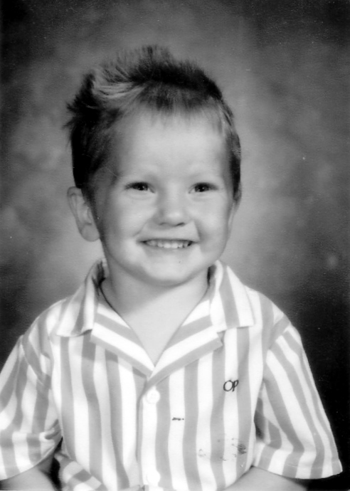 Kelby, age three. (There's nothing innocent about the smile, the bed head or the jelly-stained shirt!)