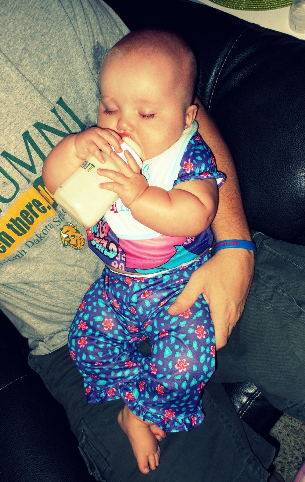 Best of all? We got to come home to this sweetie. She’s working on two more (top, front) teeth, holds her own bottle and crosses her feet. She’s growing so fast!